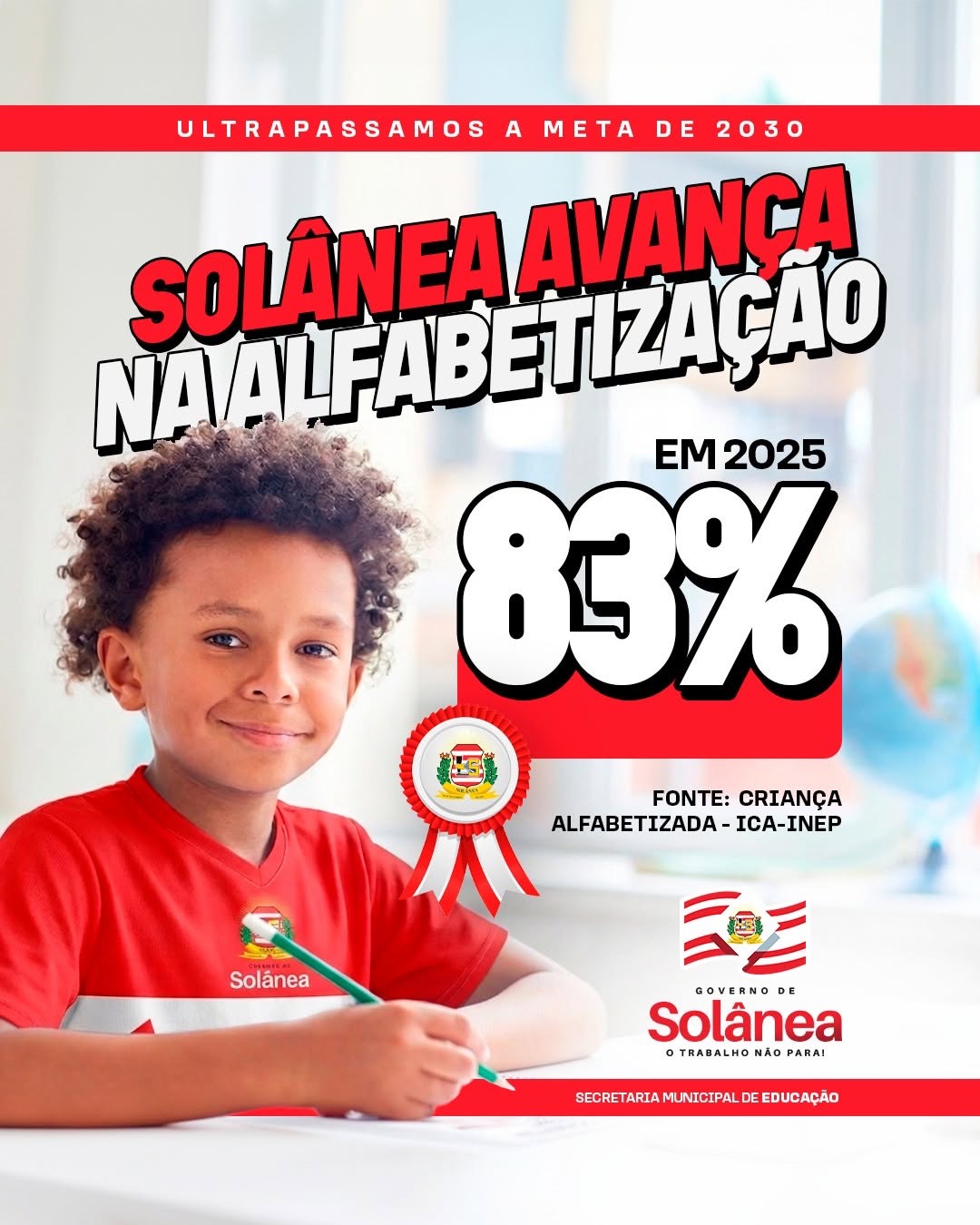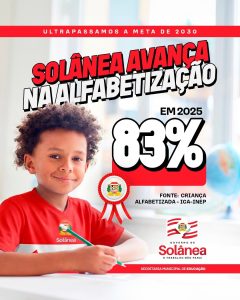 O município de Solânea segue avançando com resultados expressivos na área da educação. Dados recentes apontam que a cidade já superou a meta de alfabetização prevista para 2030, atingindo, ainda em 2025, o índice de 83% de crianças alfabetizadas.